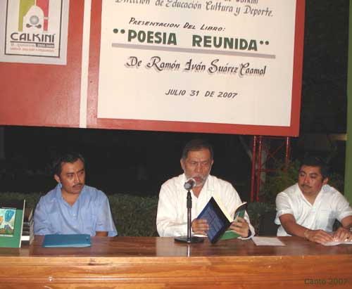 Fuentes: Una palabra incendiada. Entrevista con un poeta. Mario Aranda González. Ediciones Nave de Papel. Ayuntamiento de Calkiní, Campeche. 1996. Poesía Reunida. Ramón Iván Suárez Caamal. Instituto de Cultura de Campeche. Gobierno del Estado de Campeche, 2006. 344 Págs. Los ojos de Ah-Canul (reseñas y comentarios 2000-2011). Santiago Canto Sosa, en la página http://calkini.net. Fotos: archivo de Santiago Canto Sosa. |