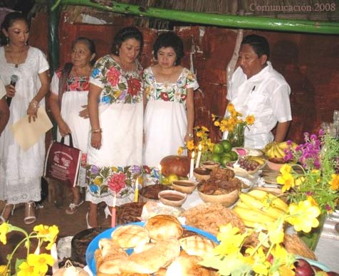 Según dijo, todo esto viene desde la época de los españoles, en donde se afirma que hay que pintarles el camino a las almas, calear las albarradas, y preparar el exquisito manjar que es el “pí” de “X’pelón”, que no puede faltar en la mesa; lo mismo que el chocolate, los dulces de calabaza, el tradicional pan de muerto, el agua, las flores del “x’tes”, el “xk’aan lol”, entre otras, según sean las costumbres. |