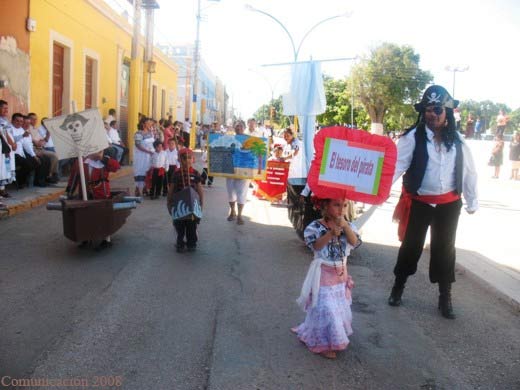 El Centro de Desarrollo Infantil (Cendi) fue el primero de los contingentes en pasar; hizo la representación de los tradicionales “osos” de Nunkiní. Luego, vino el jardín de niños “Benito Juárez”, con "El pregonero".