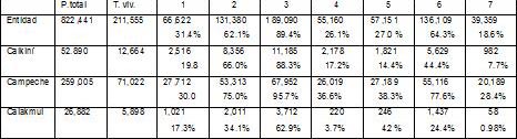 Los datos del cuadro siguiente, tomados del Censo de Población y Vivienda 2010 del INEGI, nos dan a conocer los bienes que dispone en sus viviendas la población de nuestro municipio, que de alguna manera retrata las condiciones de bienestar de las familias y también sus limitaciones. En el cuadro se incluyen cifras estatales y de los municipios de Campeche y Calakmul, como referencia del más desarrollado y el de mayor marginación (Calakmul).
