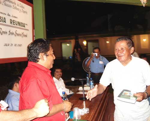 al alcalde, quien minutos antes agradeció al poeta radicado