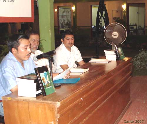 Iván Suárez Caamal (centro) leyó fragmentos de su obra |