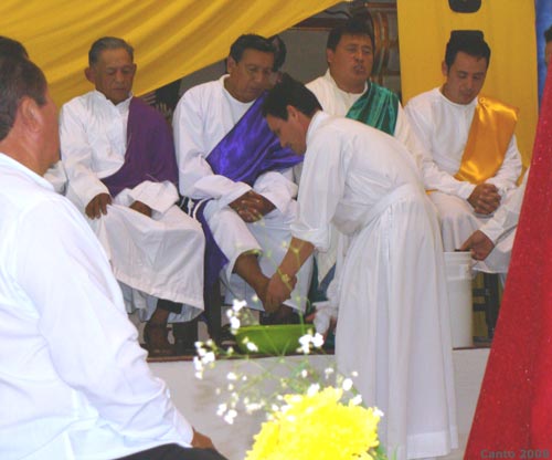 El jueves 20 se repitió el tradicional Lavatorio de Pies, durante la misa de las seis de la tarde, en la celebración denominada In Coena Domine. 12 personas representaron a los apostóles. |
