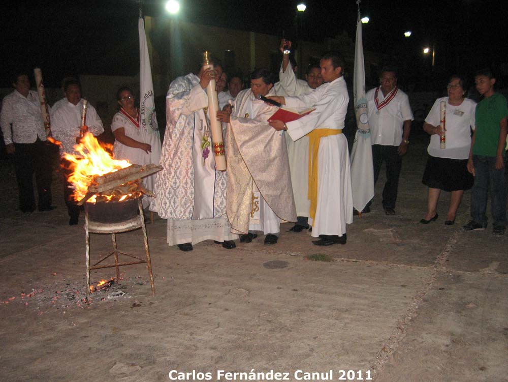 el "fuego nuevo" para luego encender el "Cirio