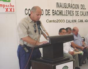 Plantel 13 del COBACH. En la puerta, maestros y director, acompañados