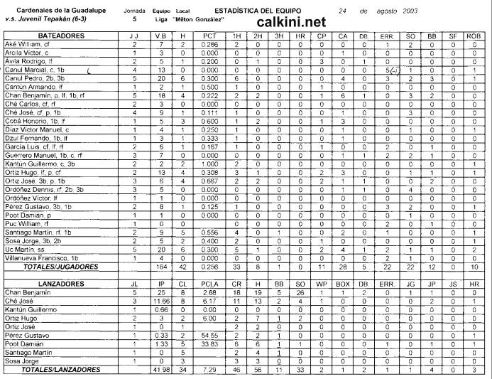 tablas y estadísticas: Santiago Canto Sosa