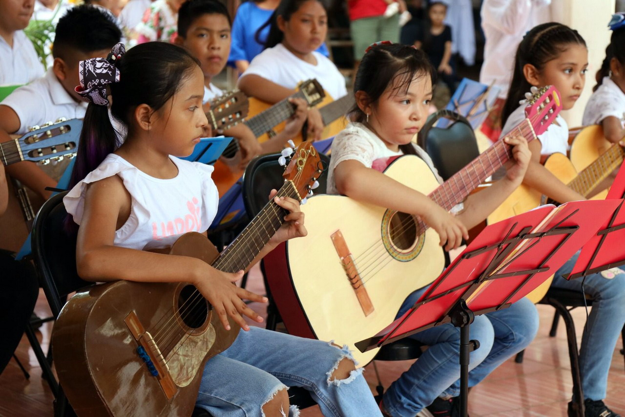 Durante el evento, la presidenta estuvo acompañada de Jhonny Orlando Collí Chim, regidor de Educación, Cultura, Deporte y Turismo; de Verónica Guadalupe Yam, directora de área; así como de maestros de la Casa de Cultura, padres de familia y decenas de pequeñines que culminan una etapa más de su formación artística.