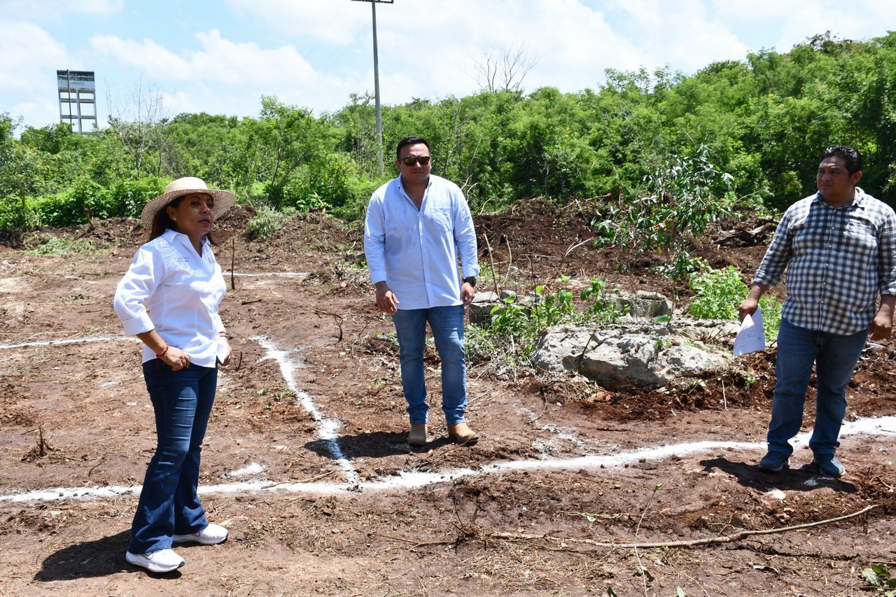 Al término del evento de colocación de la primera piedra de esta obra, se realizó un recorrido por parte de la alcaldesa, en conjunto con Ricardo Maxín Soriano, director de Obras Públicas, Desarrollo Urbano y Territorial; Robert Armando Alfaro Huchín, Director de Desarrollo Económico, Agropecuario de Inclusión y Bienestar Social, por el área de la construcción de las instalaciones de lo que será la Casa de la Mujer Maya. |