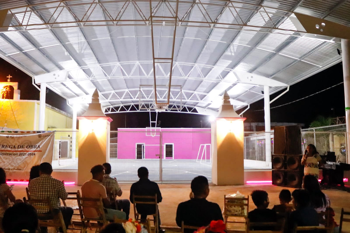 Autoridades municipales, encabezadas por la presidenta Juanita Cortés Moo, realizaron la entrega de una cancha techada de usos múltiples en la localidad de Santa Cruz Pueblo. La comunidad reunida en este evento manifestó con aplausos su agradecimiento por estas obras que encaminan a esta localidad a un desarrollo urbano armonioso.