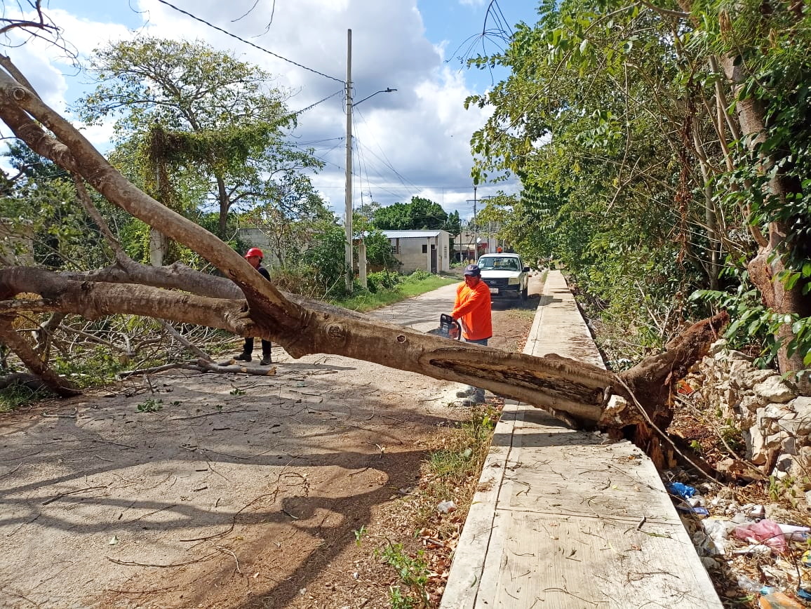 Durante estas jornadas de trabajo, se brindó atención inmediata para liberar la calle 1, entre las calles 22A y 22B, de la colonia Fátima, la cual había quedado obstruida tras la caída de un árbol. Gracias a la pronta intervención, se restableció la circulación vehicular y peatonal, previniendo mayores riesgos para la ciudadanía.