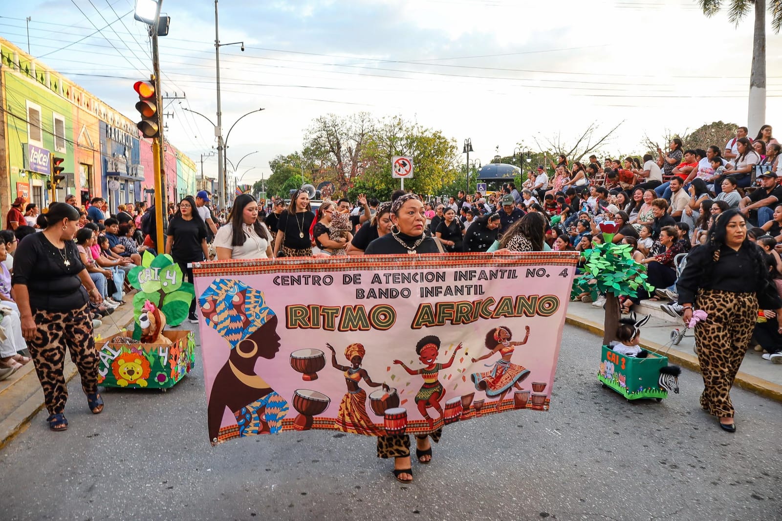 Con vistosos trajes carnavalescos, el Centro de Atención Infantil No. 4 abrió el desfile con una presentación de ritmo africano. Posteriormente, la escuela preescolar Benito Juárez contagió de alegría con su comparsa “Qué Rico Mambo”, mientras que la Escuela Leyes de Reforma enamoró al público con su presentación “Vive”.