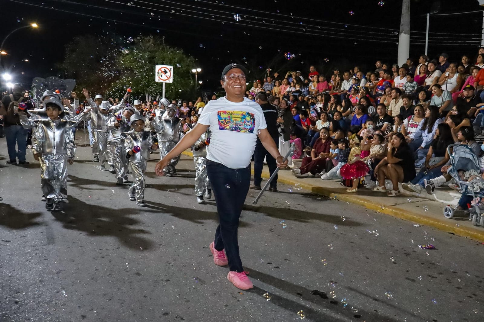 Las escuelas primarias también brillaron con sus coloridas presentaciones: La Carmen Meneses bailó al ritmo de la música carnavalesca, acompañada por Omar I y Alexa I, Reyes Infantiles del Carnaval “Magia y Fantasía” 2026, quienes desfilaron con la comparsa “Oz por Siempre”. Más adelante, la Francisco G. Torres, Turno Matutino, presentó su comparsa “Selvática”; la Mateo Reyes destacó con una temática inspirada en Brasil, y la Pablo García cerró su participación con gran algarabía musical.