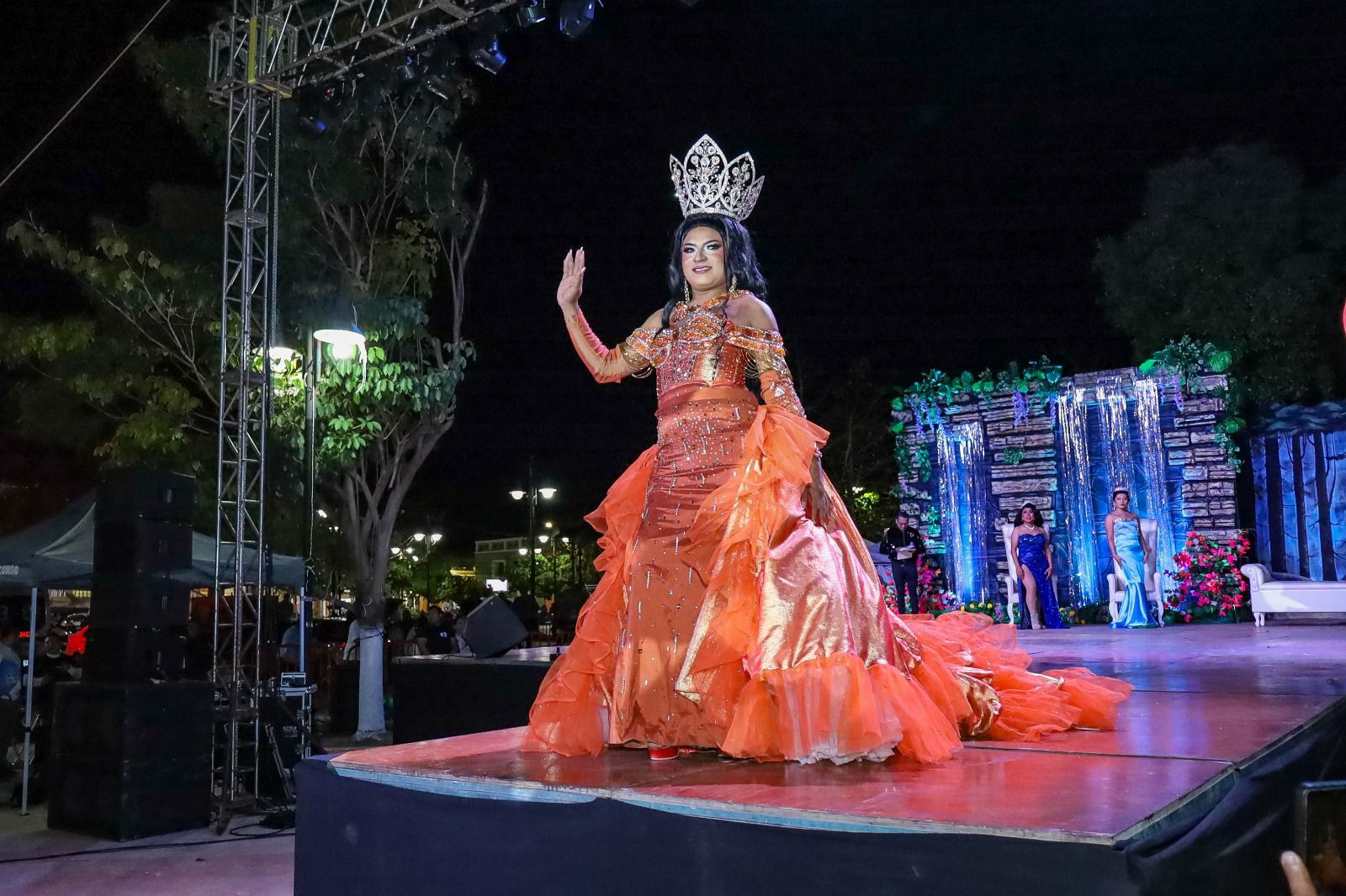 La velada inició con la emotiva despedida de la reina saliente, Keren Julissa, quien realizó su última pasarela entre aplausos y muestras de cariño del público.