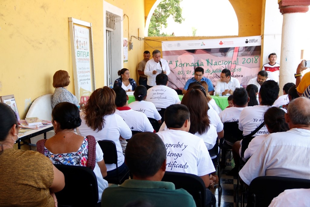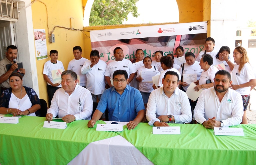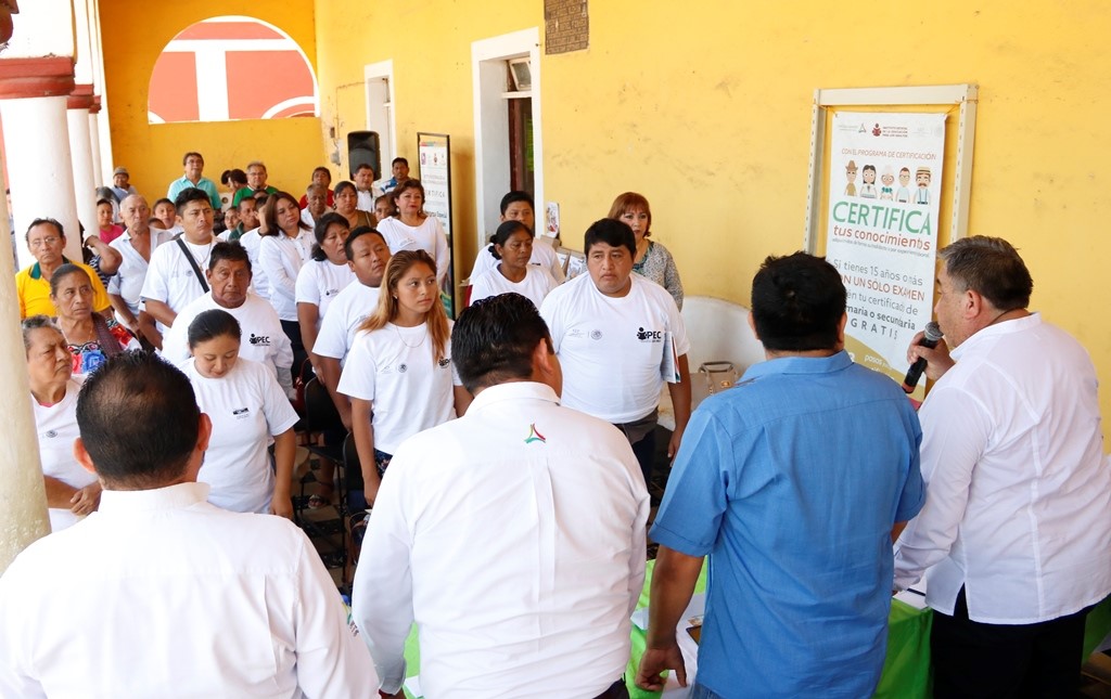 Previo a la inauguración, se entregó constancias de alfabetización a María del Socorro Chuc Tec, Teodoro Kantún Canché, Porfirio Dzib Ku, María Elma Cahún Euán, María Estela Tamay, y a María Agripina Ramírez.