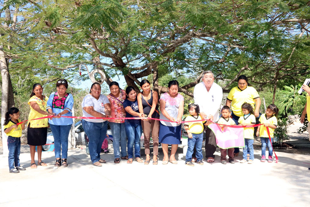 La inauguración estuvo encabezada por el presidente municipal, José Emiliano Canul Aké; acompañado de la presidenta del DIF, Nelly María Canul Aké; la supervisora de la zona 017, de Preescolar, Patricia Irene Chablé Cen; la directora del plantel, Rosario del Carmen May Jiménez; y padres de familia.