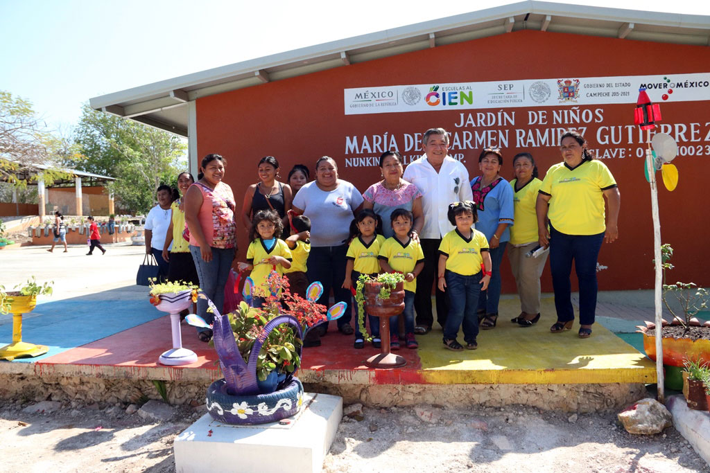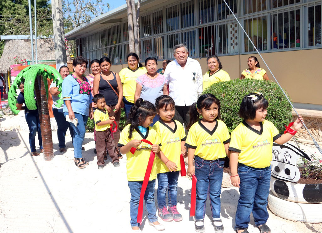 Como parte del proyecto “Diseña el cambio”, autoridades municipales y educativas inauguraron las áreas de convivencia en el jardín de niños “María del Carmen Ramírez Gutiérrez” de la localidad de Nunkiní, que fueron elaboradas con material reciclado.