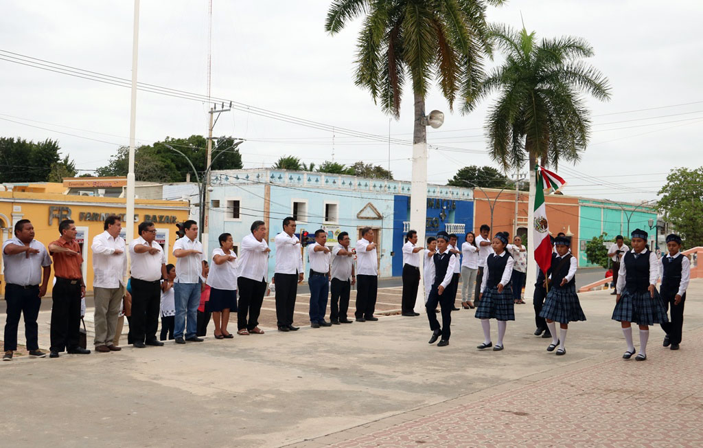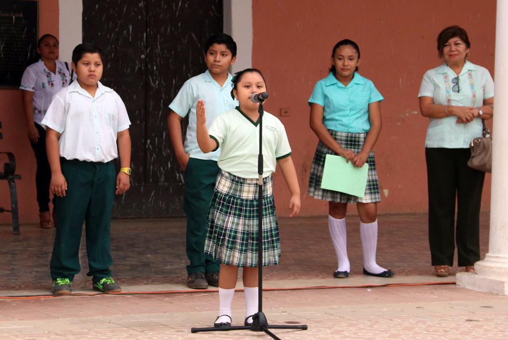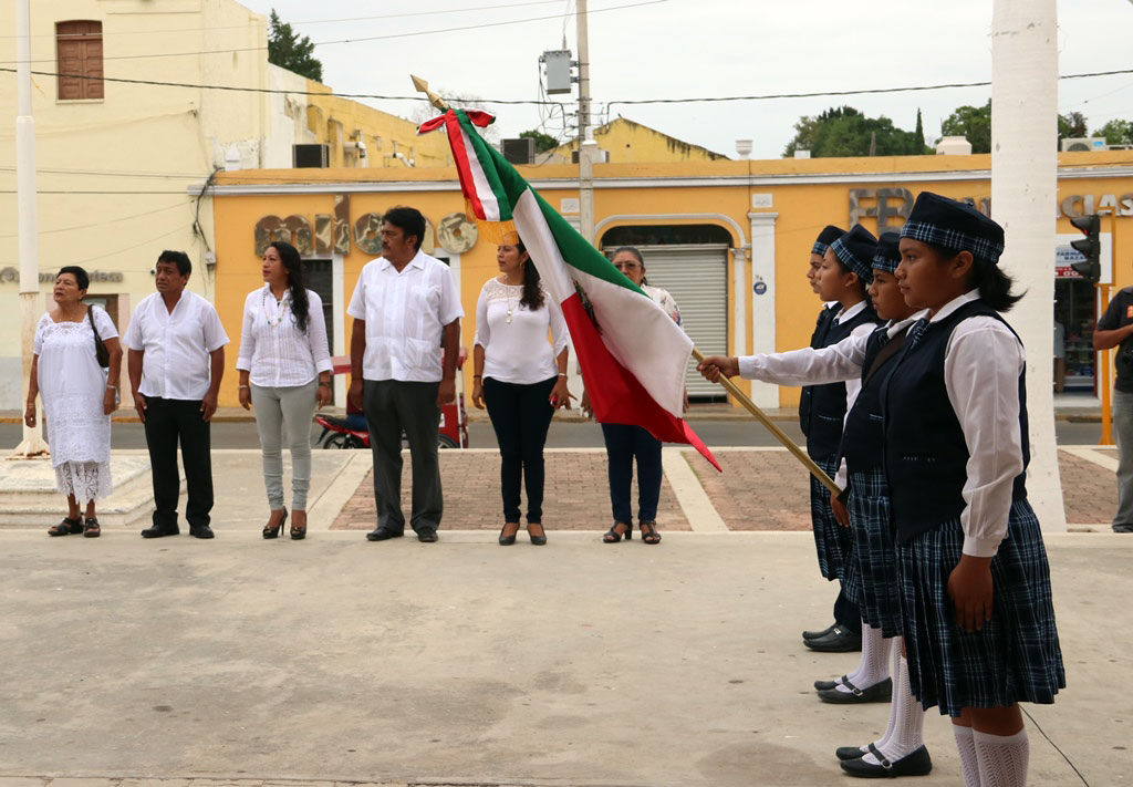Se contó con la participación de la escolta y alumnos de la escuela primaria “Pedro Pablo Arcila”, encabezados por su director, Diego Perera Ceh.