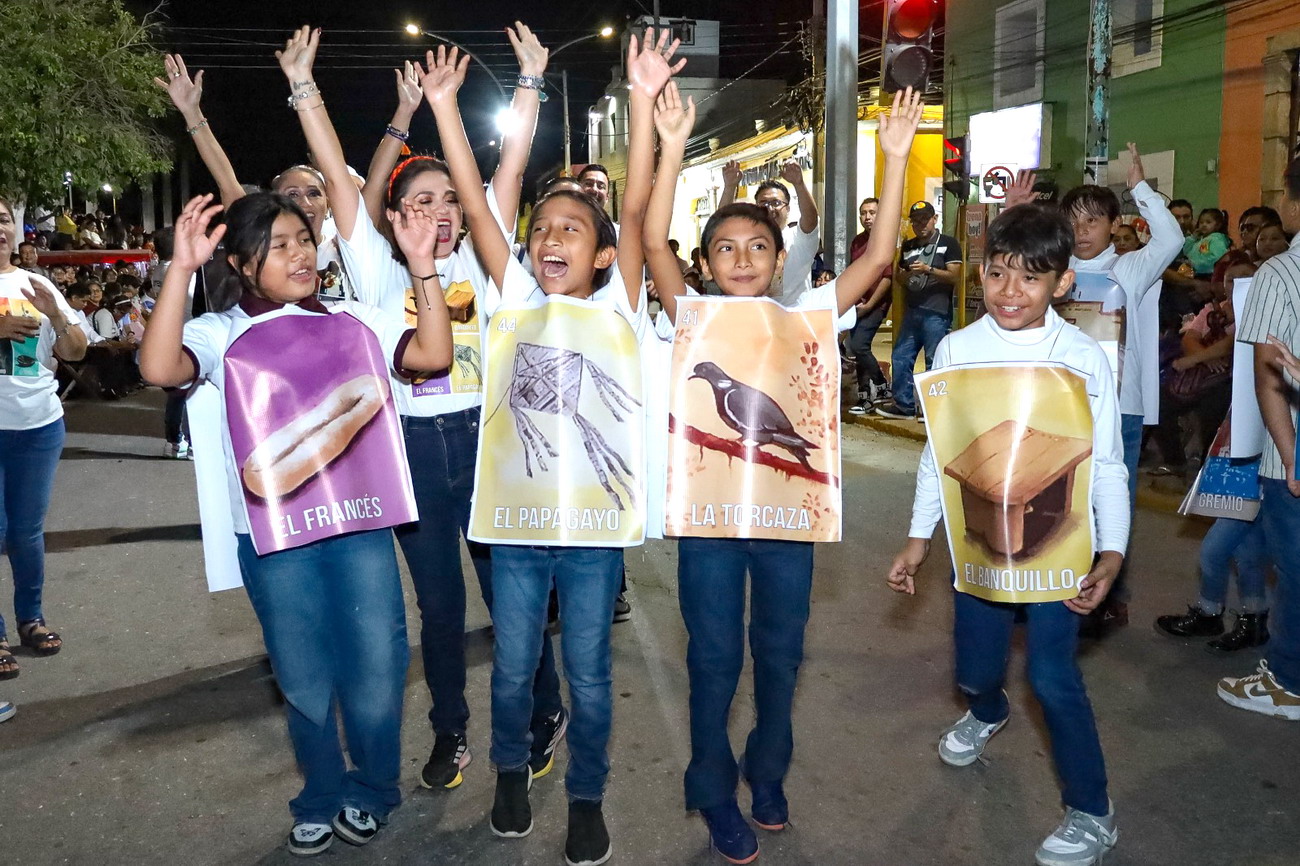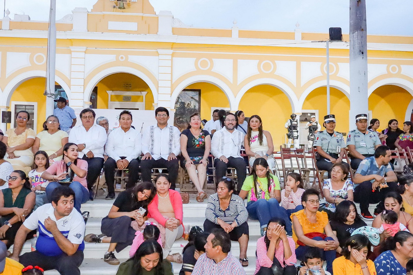 El Centro Histórico lució abarrotado por decenas de familias que disfrutaron del desfile lleno de cultura y tradición, realizado en el marco de la Feria Artesanal, Cultural y Deportiva con motivo del 107 Aniversario de la Titulación de Calkiní como Ciudad. El desfile fue presidido por el alcalde Milton Millán, acompañado de su esposa Guadalupe González; del Sargento de la Guardia Nacional, Alejandro López, y la Sargento Alejandra Fragoso; de la diputada Tania González; del Cabildo Infantil, los reyes del Carnaval 2025, directores y funcionarios del Ayuntamiento.