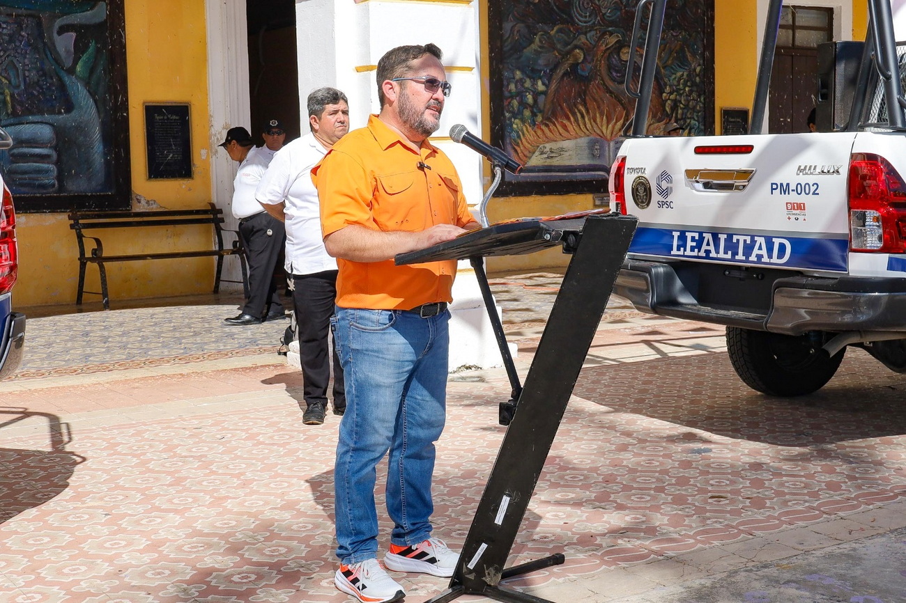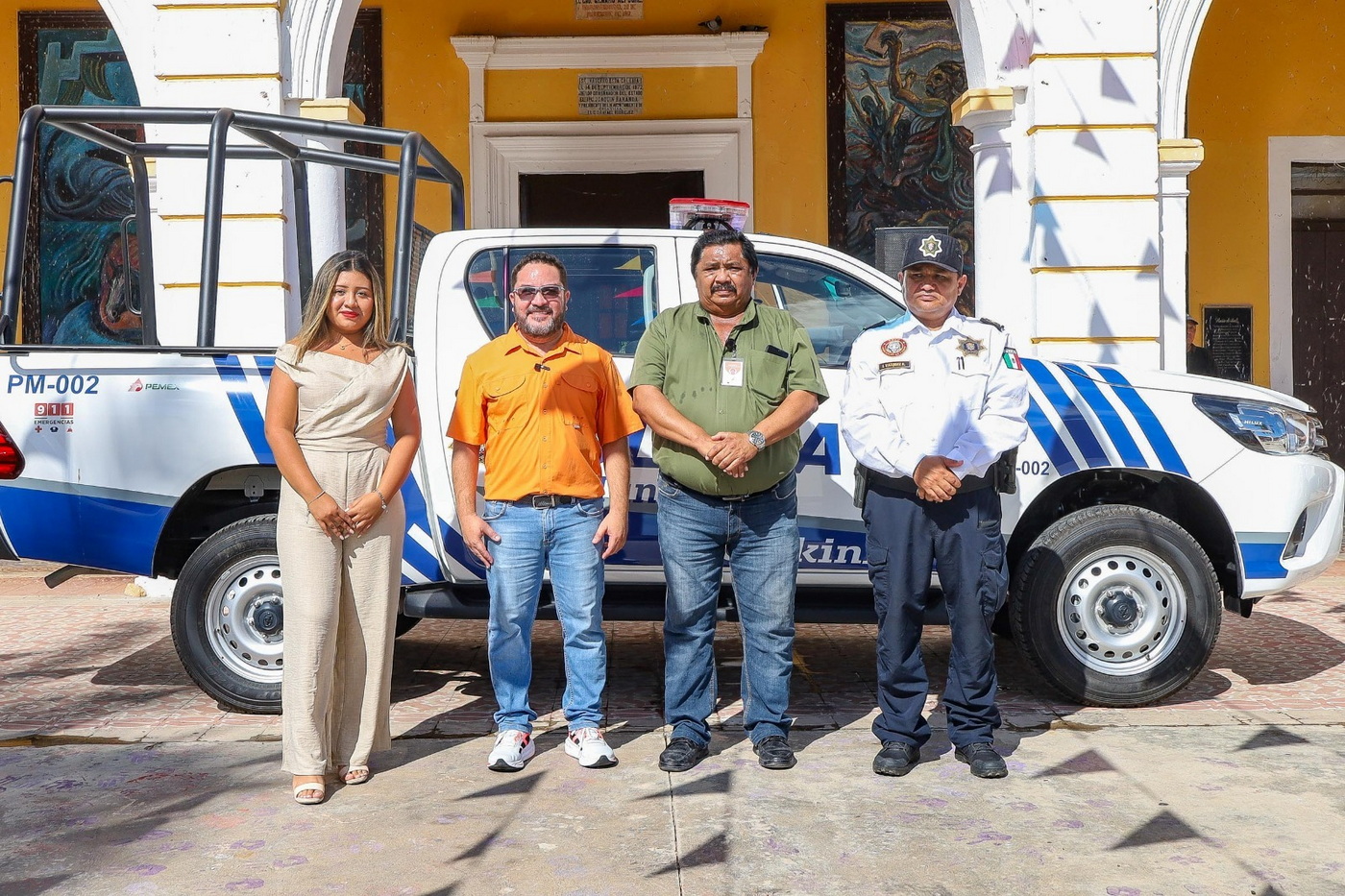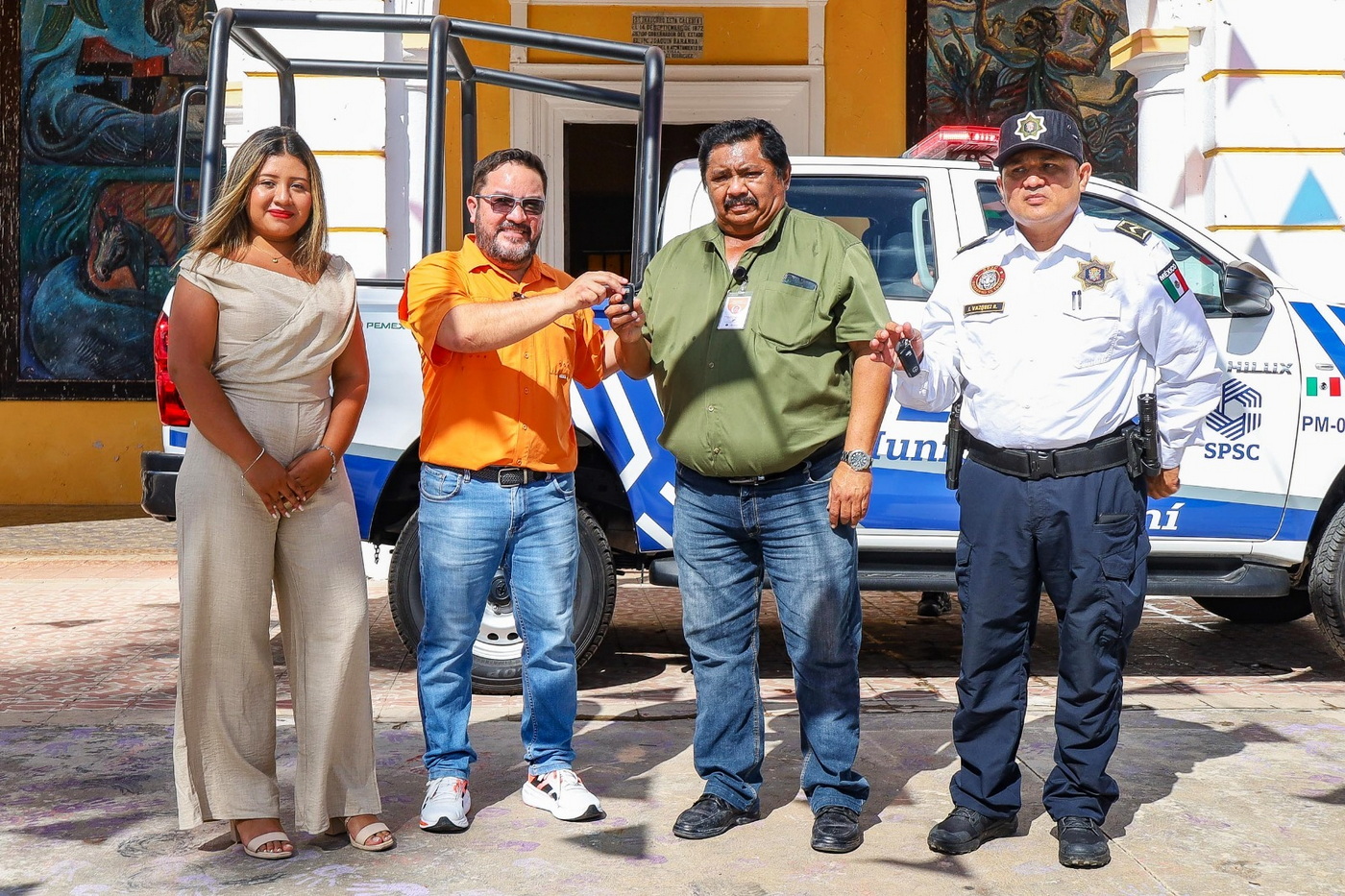 Acompañaron al alcalde en el acto de entrega el director de Seguridad y Tránsito Público, Manuel Fulgencio Magaña Herrera; la directora de Administración, Yocelyn Isel Huchín Calán; regidores y directores del Ayuntamiento. El comandante operativo, Ismael Vásquez Rodríguez, recibió de manera simbólica las llaves de las unidades.