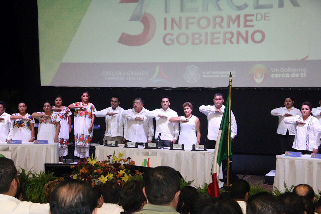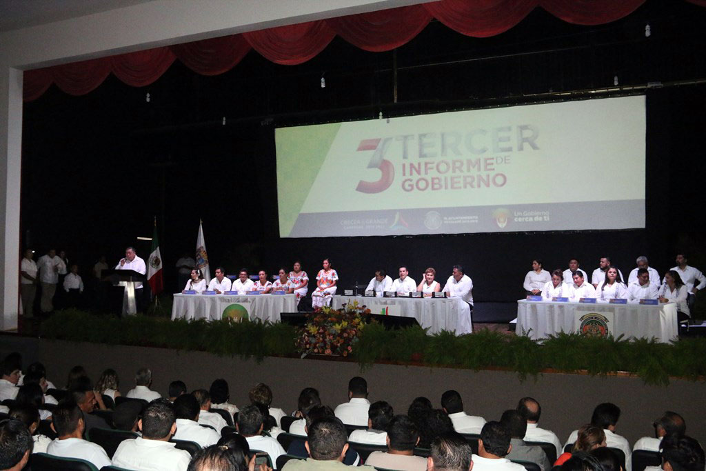 El presidente municipal, José Emiliano Canul Aké, rindió su tercer y último informe de actividades, durante un acto solemne celebrado en el Teatro de la Ciudad “Pedro Raúl Suárez Cárdenas”. Se contó con la asistencia del gobernador Alejandro Moreno Cárdenas, acompañado de Silvia Osorno Magaña, titular del poder judicial en el Estado. Luego del evento, se tomó protesta a las autoridades municipales electas para el periodo 2018-2021 encabezadas por Roque Sánchez Golib, quienes el próximo 1 de octubre tomarán posesión de sus cargos.