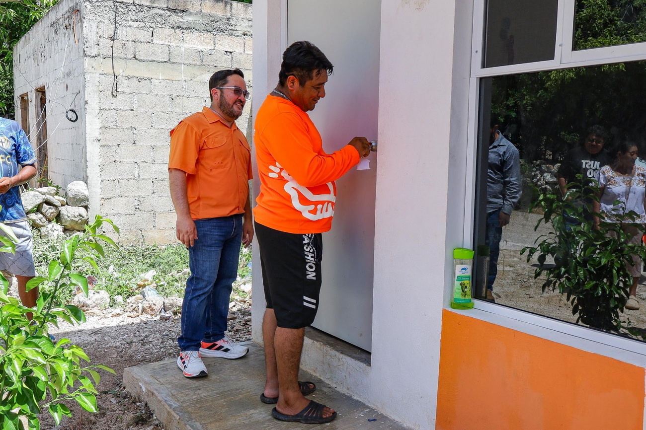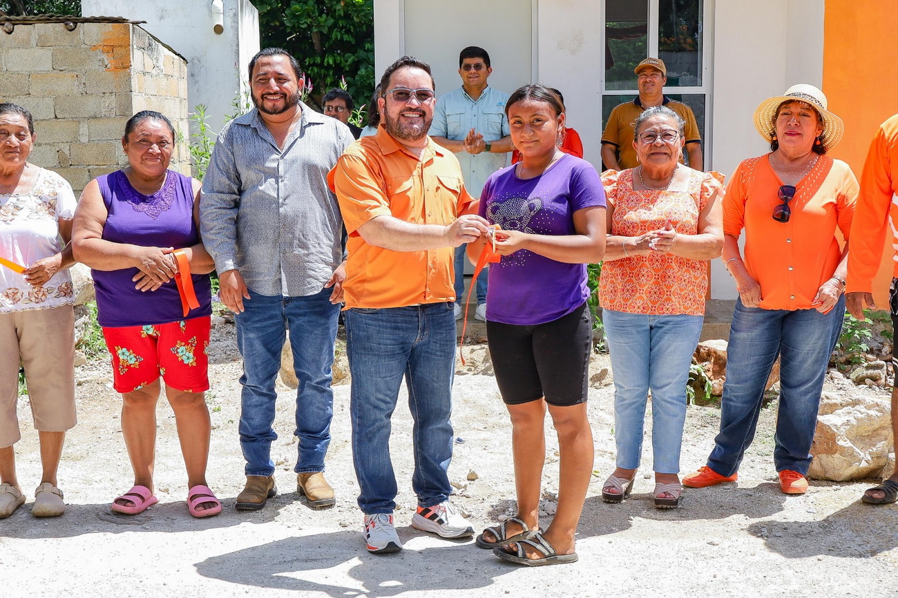 Durante el evento, el alcalde estuvo acompañado por el director de Desarrollo Económico, Agropecuario, de Inclusión y Bienestar Social, Filiberto Ku Turriza; el agente municipal de la comunidad, José Orlando Coyoc Naal; regidores del Ayuntamiento y vecinos del lugar que atestiguaron la entrega formal de llaves a las familias beneficiadas.