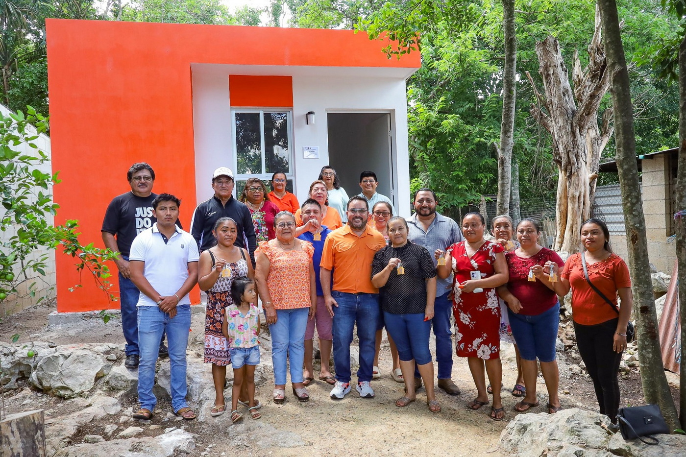 Acompañado del director de Desarrollo Económico, Agropecuario, de Inclusión y Bienestar Social, Filiberto Jesús Ku Turriza, regidores, directores, así como de las familias beneficiarias y habitantes de la comunidad, el edil encabezó el corte del listón inaugural de estos cuartos dormitorios, que benefician de manera directa a las familias de la comunidad.