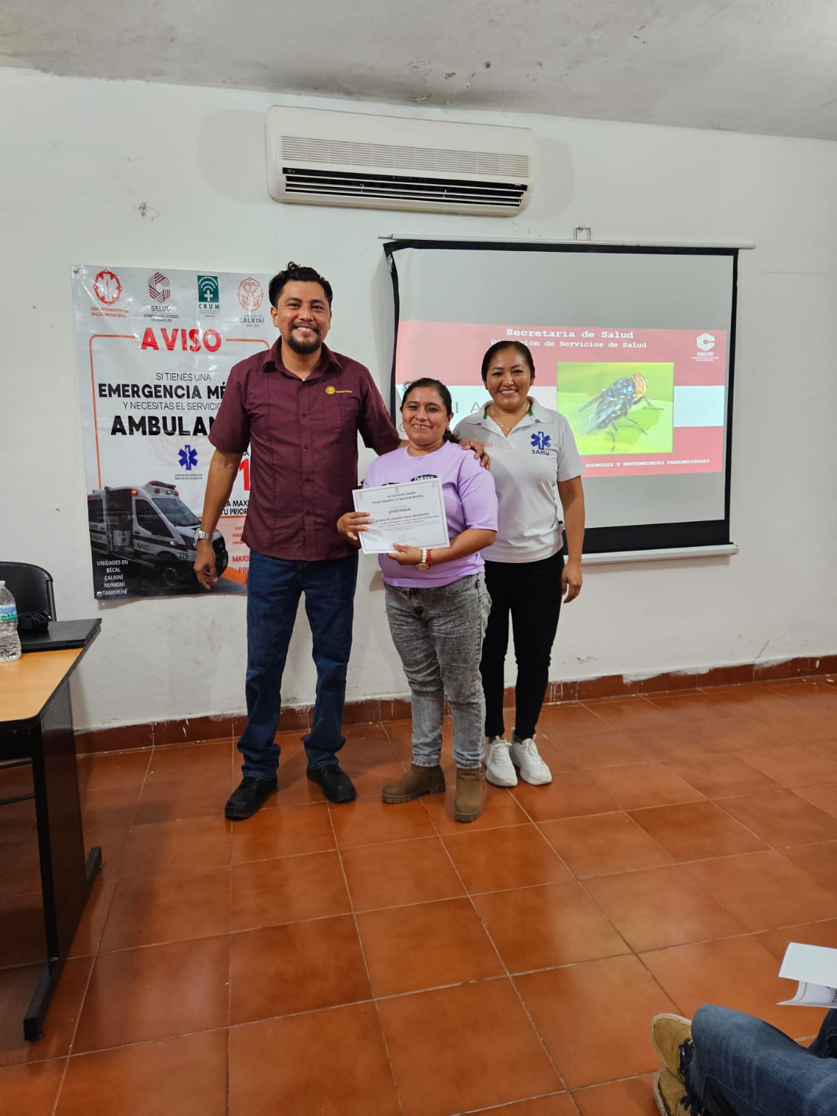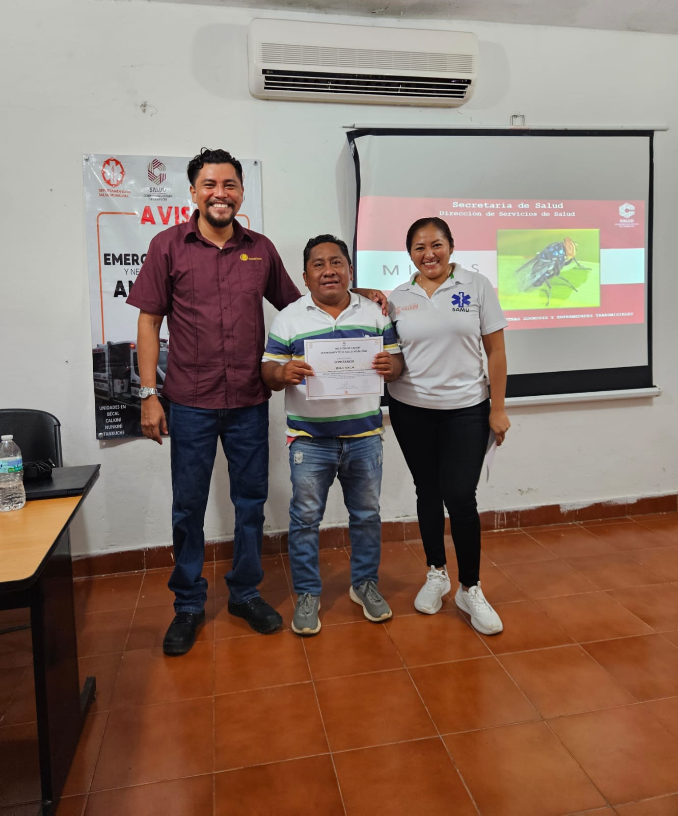 Con el propósito de fortalecer la prevención y el cuidado de la salud en el municipio, la Alcaldía de Calkiní, a través de su Departamento de Salud, realizó una capacitación sobre miasis por gusano barrenador en humanos y animales (identificación y diagnóstico), así como sobre rabia en animales y humanos. La ponencia fue impartida por Antonio Contreras Domínguez, responsable estatal del Programa de Zoonosis en Campeche, en coordinación con la titular del Departamento de Salud Municipal, Ana Cecilia Collí Herrera.