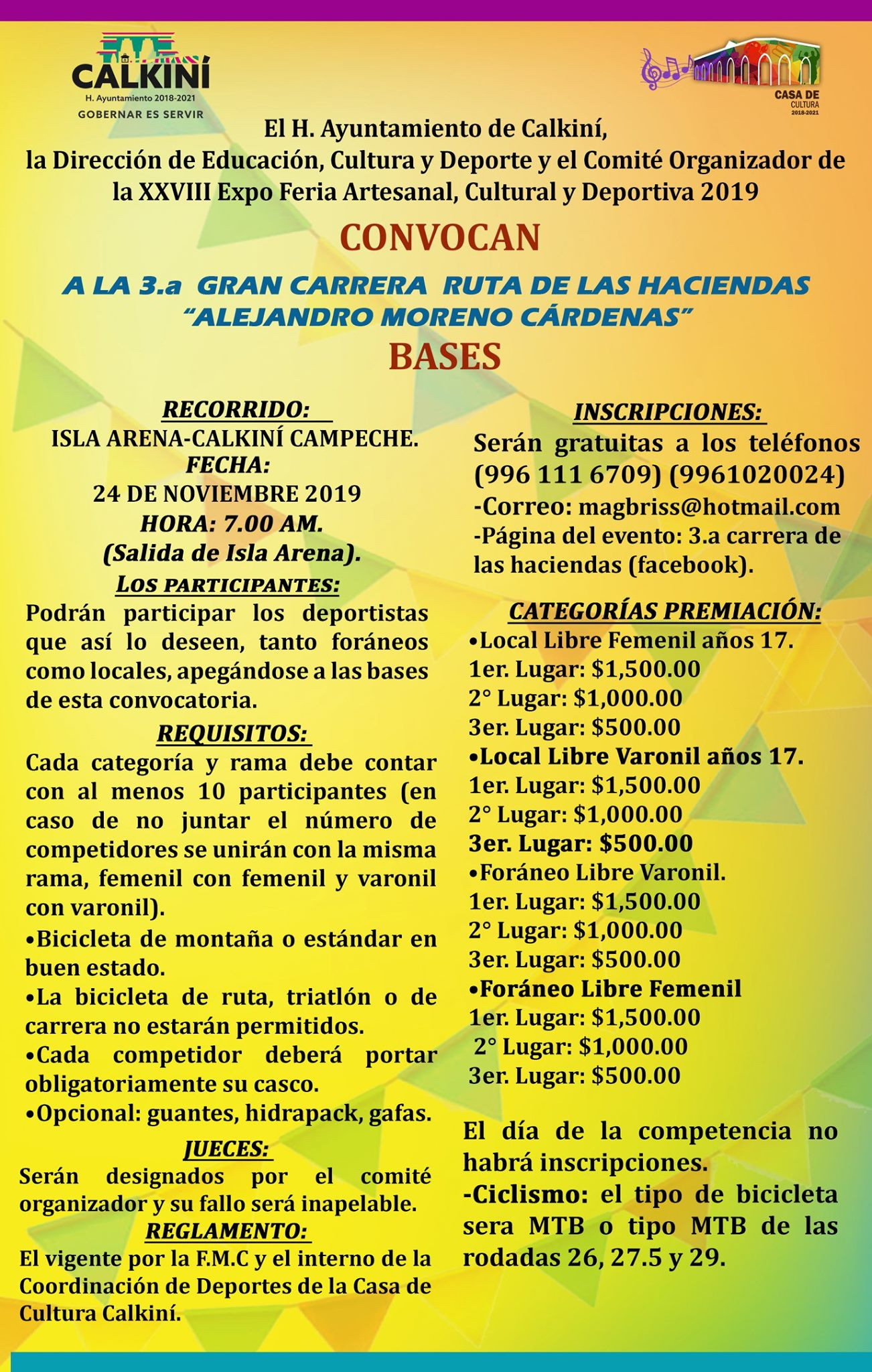 | El H. Ayuntamiento de Calkiní, la Dirección de Educación, Cultura y Deporte, y el Comité Organizador de la XXVIII Expo Feria Artesanal, Cultural y Deportiva 2019
