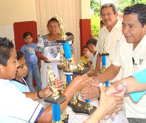 A las dos de la tarde, los funcionarios y personalidades premiaron con trofeos a los equipos que conquistaron los dos primeros sitios en las ramas deportivas.