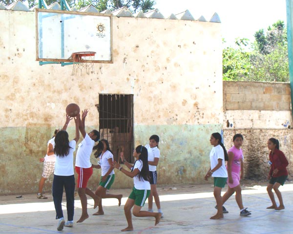 los de baloncesto varonil, en la cancha de la Telesecundaria;