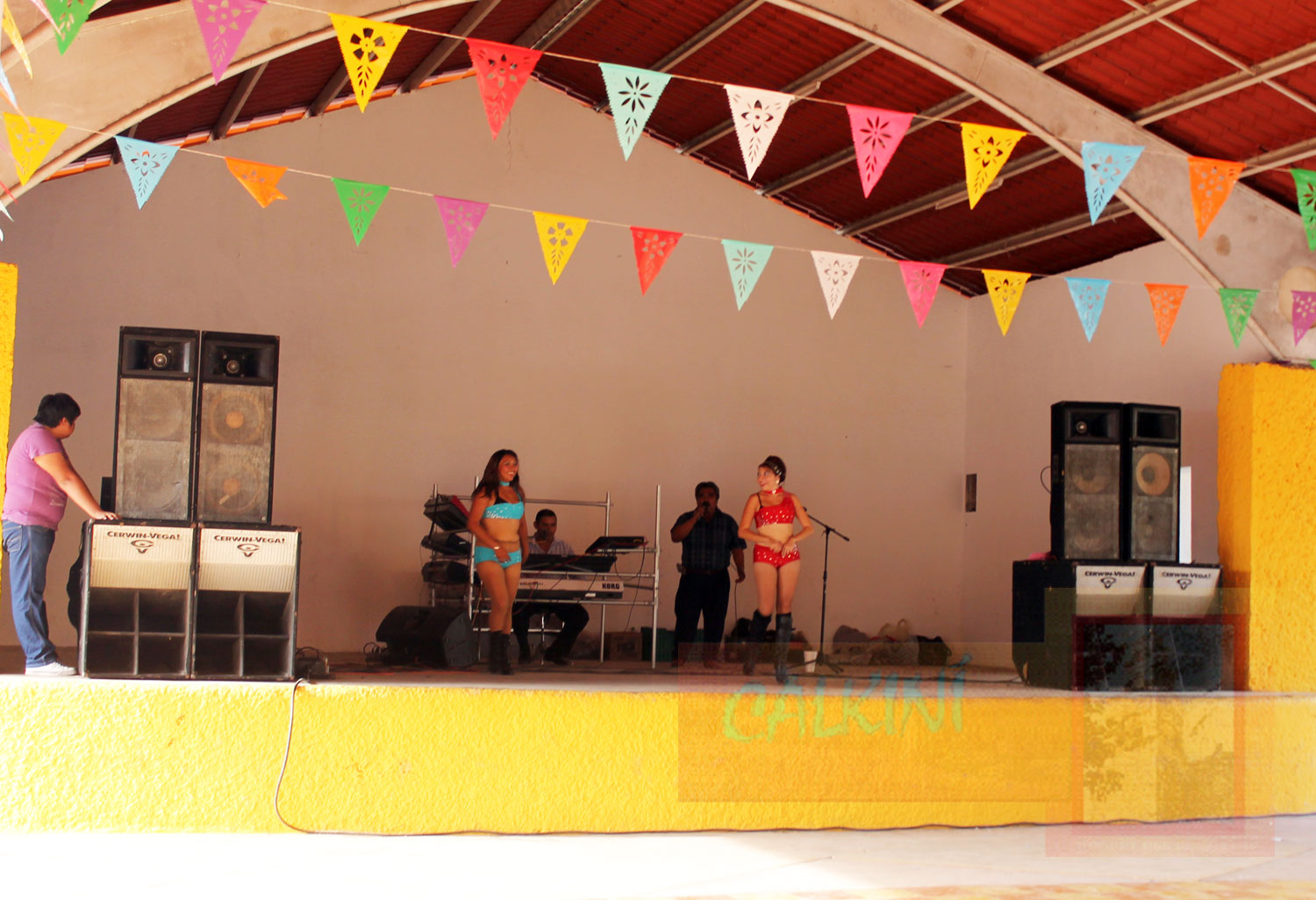 | 5:00 hrs. Alborada en el pórtico de la capilla, como inicio de la fiesta. |