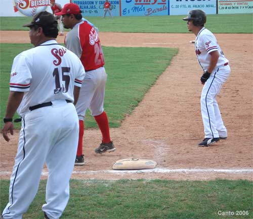 Pérez, en jom; Marcos Cimá, en 1ª base;