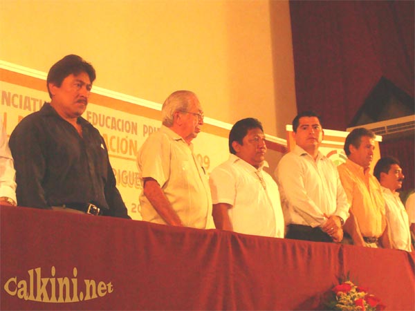 finalizar el acto, alumnos y maestros cantaron