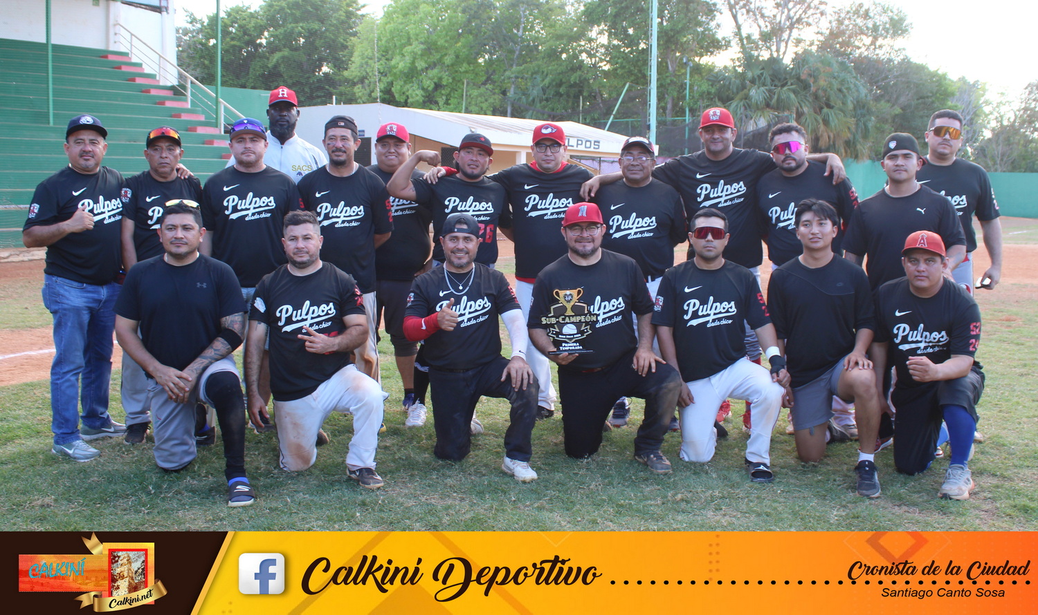 Racimo de 12 carreras en el noveno episodio, dio la victoria (27-19) y el campeonato al "Deportivo Halachó", en partido realizado el domingo 15 de marzo, en la casa de los "Pulpos", que perdieron lo invicto como equipo local en la Liga Premier de Béisbol Inter-Comisarías Camino Real, en su 2a. edición.