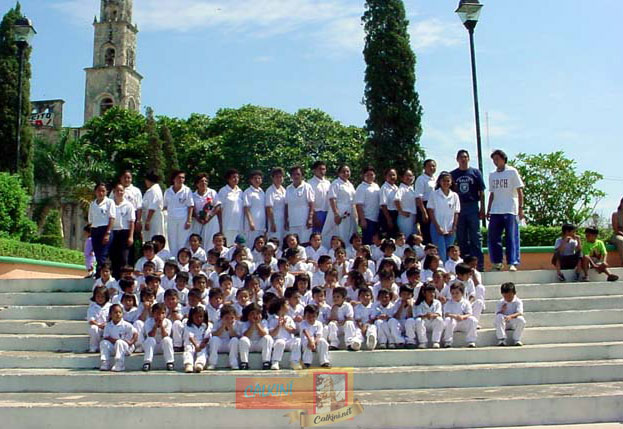El contingente tomó la calle 20, en el primer cuadro de la ciudad, para enfilarse al Palacio Municipal, en donde los esperaban, de pie en la explanada, los profesores Manuel Avilés Cuevas, Director de Educación, Cultura y Deporte; María Angelina Berzunza Chacón, Supervisora de la Zona 017, jurisdicción a la que pertenece el plantel; y Leovigilda Pacheco Blanqueto, directora del mismo. |