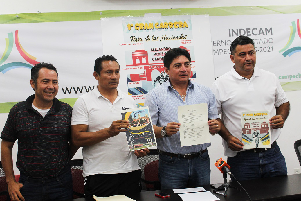En representación del Director General, Jorge Hurtado Montero, el Coordinador Institucional del INDECAM, José Muñoz Valdez, anunció en rueda de prensa la 1era Gran Carrera de Ciclismo de Ruta de las Haciendas “Alejandro Moreno Cárdenas”, que se realizará en el municipio de Calkiní, el 19 de noviembre a las 7:00 am. En compañía del comité organizador, conformado por Edgar Carrillo Santoyo, Roque Sánchez Golib y Magno Mendiola Loeza, se informó que el evento es totalmente gratuito, por lo que podrán participar ciclistas foráneos y locales. |