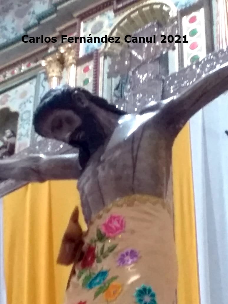 A esta venerada imagen, desde que se tiene memoria, se le realizan sus festejos anuales en el mes de octubre; entran y salen del templo, infinidad de gremios que en las últimas décadas han alcanzado ser una gran fiesta religiosa en esta región. Es un Cristo que ha hecho historia, se le atribuyen muchos milagros; ha sido testigo de grandes acontecimientos en la vida de este lugar, ha visto desfilar generaciones de calkinienses, mismas que le rinden veneración todo el tiempo; es una hermosa imagen de un hombre normal, tallada con un material que ha aguantado muchos años (actualmente presenta ciertos deterioros), nos muestra características de una crucifixión cruel. A pesar de los años, la imagen se conserva casi intacta.