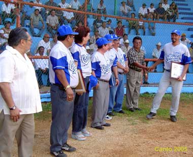 a beisbolistas, aficionados, y a funcionarios del gobierno municipal,