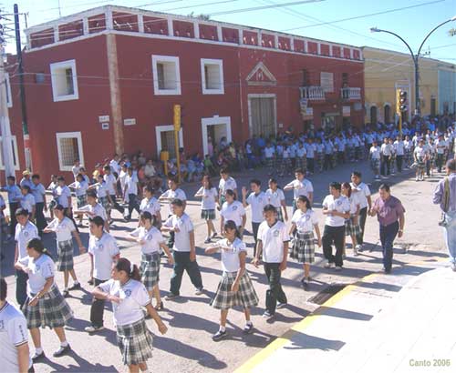 las nueve de la mañana, el desfile de alumnos de instituciones