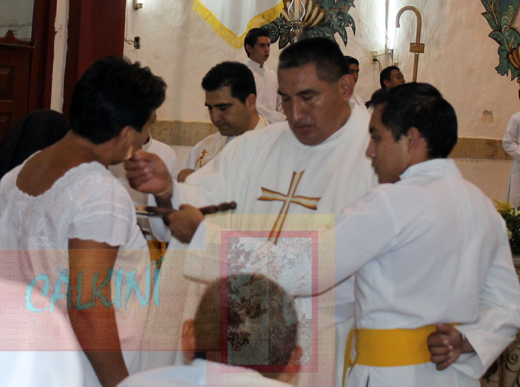 Después se realizaron las intenciones de los fieles y ofrecimiento de las ofrendas, para continuar con el Prefacio, Santo, la Comunión. En procesión, el Obispo llevó al nuevo párroco al Bautisterio, donde le hizo entrega del mismo. Antes de concluir la celebración, el pastor de la grey campechana hizo entrega a Juan de las llaves del Sagrario, por lo que en sus manos llevó la sagrada Custodia para depositarla en el Sagrario, en la capilla del Santísimo. |