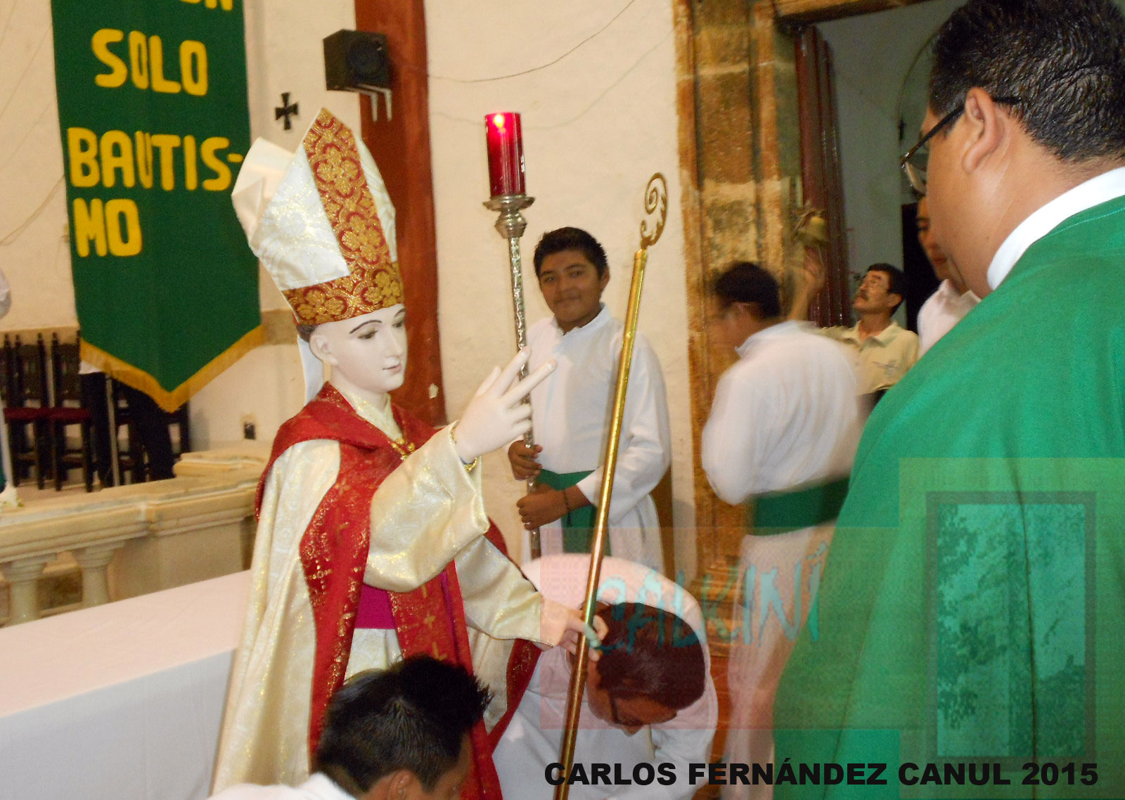 Domingo 2 de agosto de 2015.- Con tronar de voladores, cánticos y aplausos fue bajada la imagen de San Luis Obispo, patrono del templo de Calkiní.
