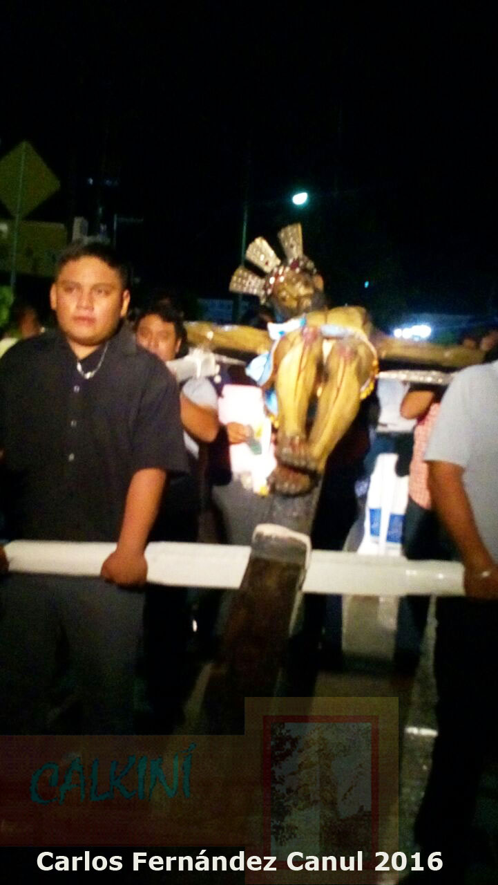 Al concluir la Misa, jóvenes cargaron en hombros la pesada imagen del Cristo, para salir en solemne procesión, misma que salió del templo a las 8:20 pm., acompañada por numerosos creyentes, con tronar de voladores, aplausos, repique de campanas.