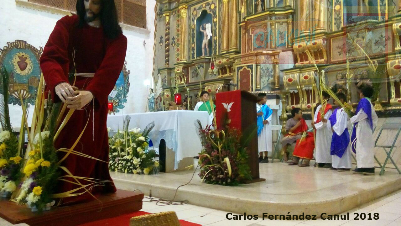 Al empezar la ceremonia en el templo de San Luis Obispo, Kantún Huchim: recordó: después de habernos preparados desde el principio de la Cuaresma con nuestra penitencia y obras de caridad, hoy nos reunimos para iniciar -unidos con la Iglesia- la celebración anual del misterio pascual, es decir, la pasión y resurrección de Jesús, misterios que inician con la entrada en Jerusalén.