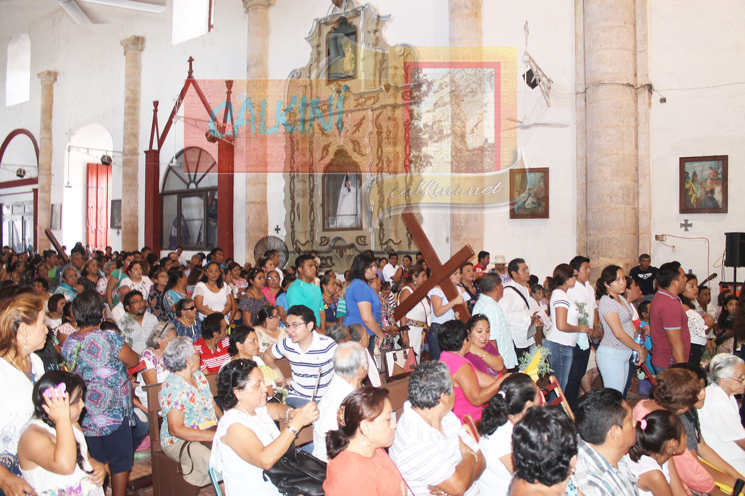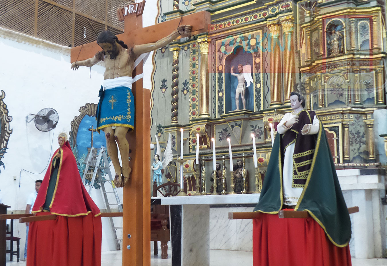 En el atrio de la iglesia principal se representó la agonía y muerte de Jesús. representado por Eusebio Balam (Jesús), Ariana Cocom (María), Jhon Collí y Carlos Pool (los dos ladrones). |