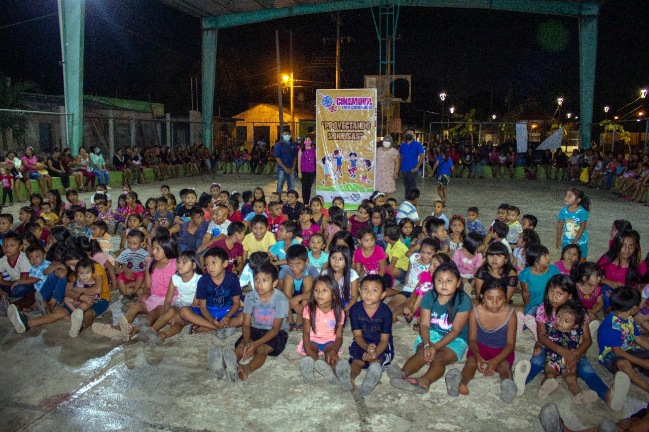 “Cinemóvil en Tu Comunidad, Proyectando Sonrisas” es un proyecto elaborado por la coordinación de Desarrollo Familiar y Voluntariado, a cargo de Walter Balam Noh, y se trata de proyectar una película infantil para el sano entretenimiento de los infantes. |