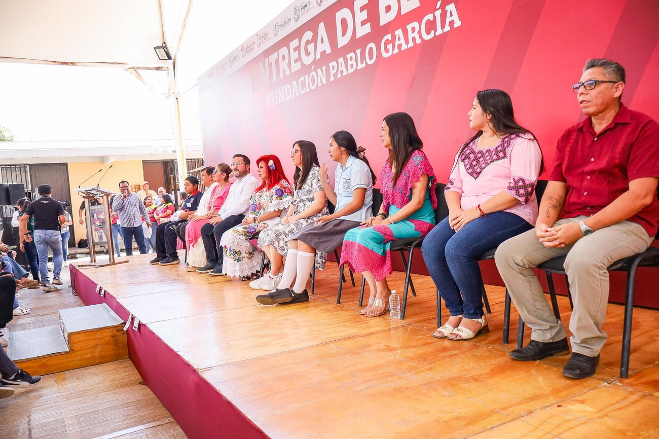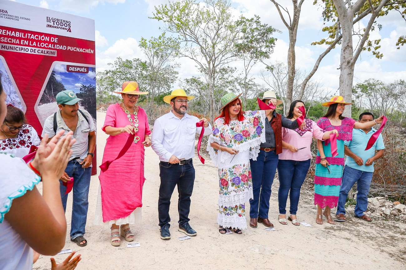 Como parte de las actividades, la mandataria hizo entrega de becas "Pablo García", en evento que se llevó a cabo en la Escuela Primaria "Francisco G. Torres"; inauguró la rehabilitación del mercado en la comunidad de Nunkiní; y dio el banderazo de inicio a la construcción de un camino sacacosechas en Pucnachén, obras que fortalecen el bienestar y la economía local.