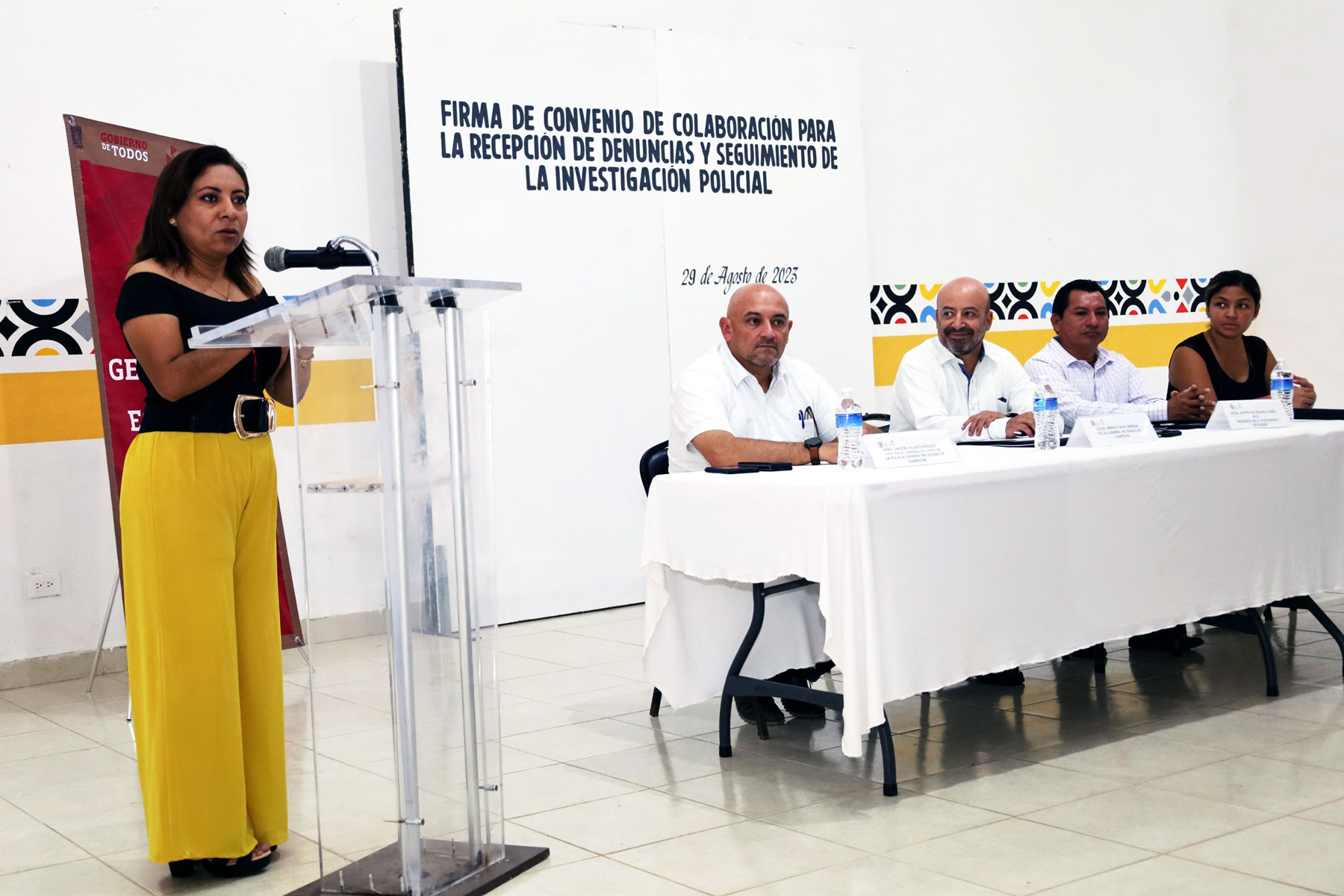 Al realizar la rúbrica con el fiscal general del estado de Campeche, la alcaldesa celebró la firma de este acuerdo sin precedentes, toda vez que contribuirá en primera instancia a la captación de mayores denuncias por parte de las víctimas, pero primordialmente a tener mayores alcances en las líneas de investigación, donde la Policía Municipal contribuirá con datos de prueba a la Fiscalía General del Estado de Campeche, al ser los primeros respondientes en el lugar del hecho.
