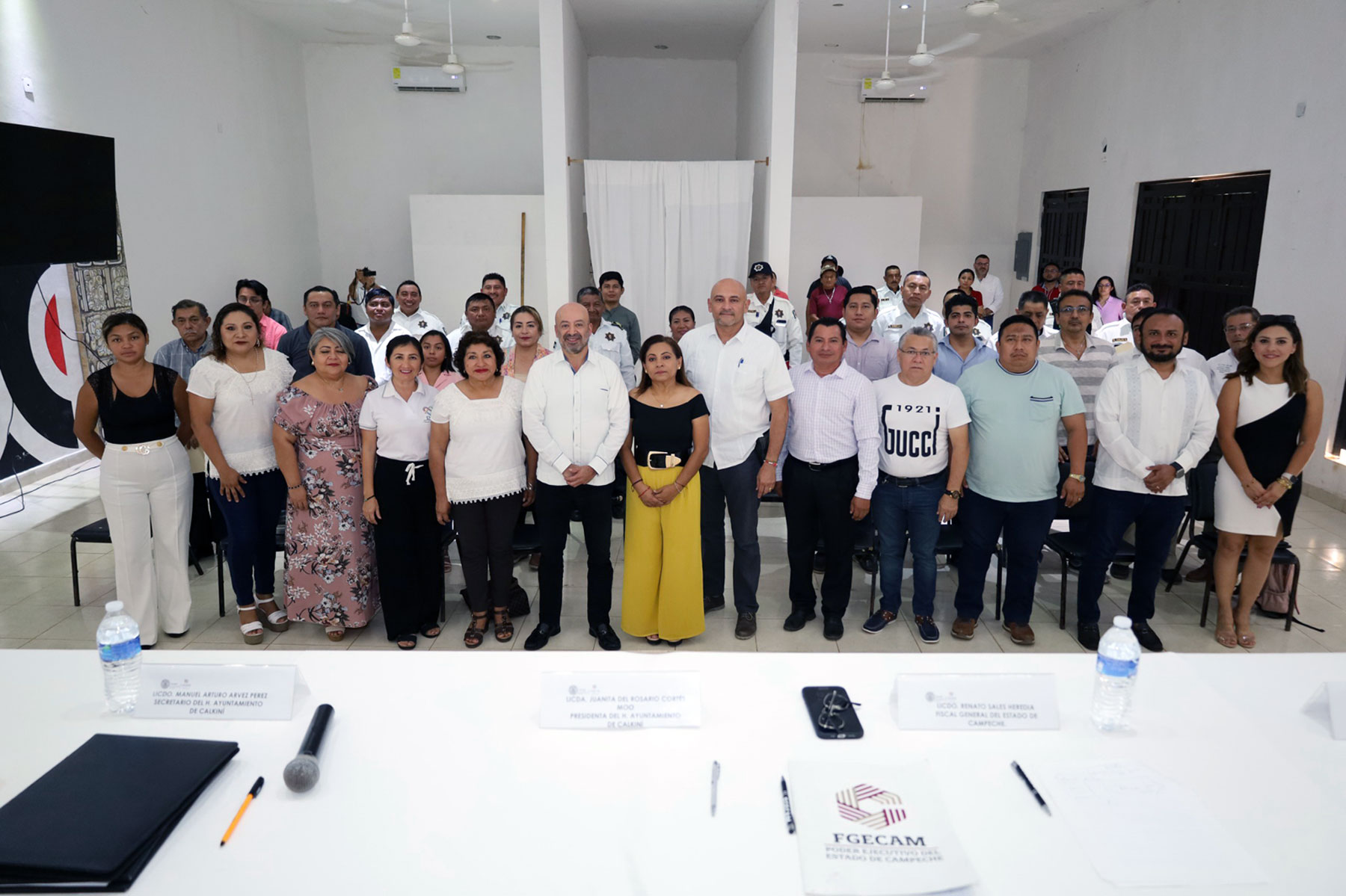 Ante la firma del convenio, asistieron la alcaldesa de Calkiní, Juanita del Rosario Cortés Moo; el Fiscal General del Estado de Campeche, Renato Sales Heredia; el Vicefiscal General Adjunto de la Fiscalía General del Estado de Campeche, Jakson Villacís Rosado; el Coordinador de Administración y Finanzas de la Fiscalía General del Estado, Hugo Enrique Estrella Rodríguez; el Secretario del Ayuntamiento de Calkiní, Manuel Arturo Arvez Pérez; la Directora de Protección, Seguridad Pública y Ciudadana de Calkiní, Joana Gabriela García Arias; así como regidores del Ayuntamiento de Calkini.