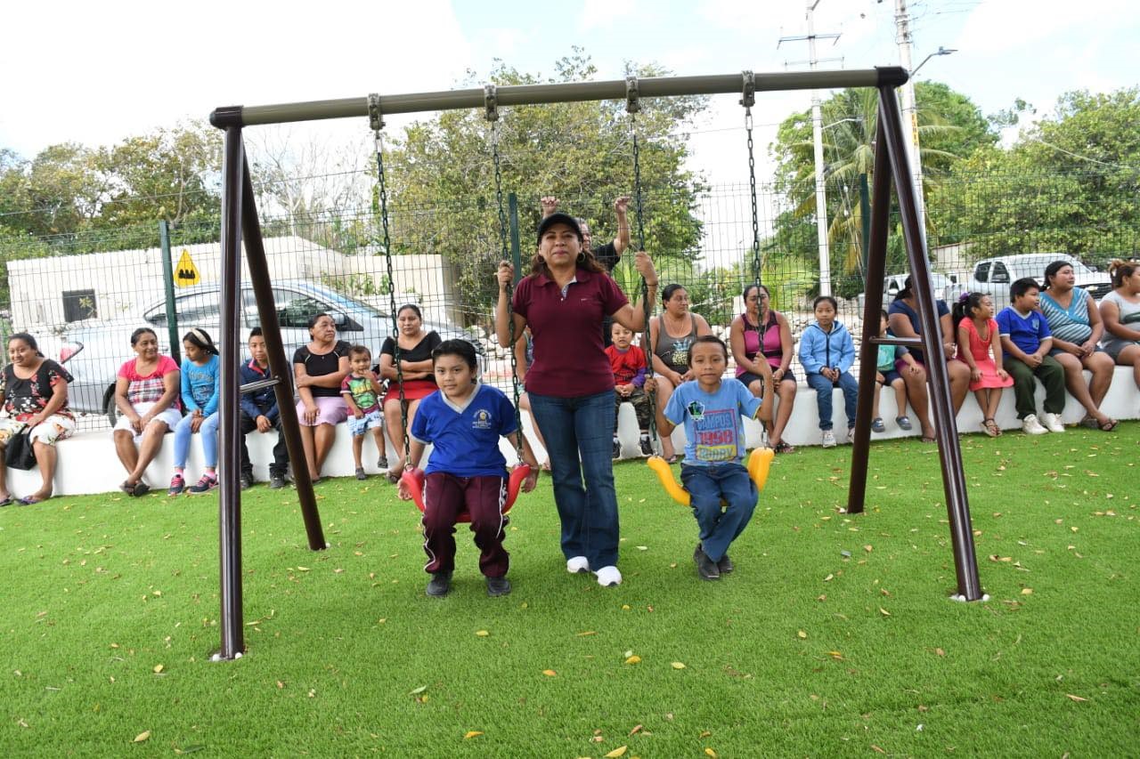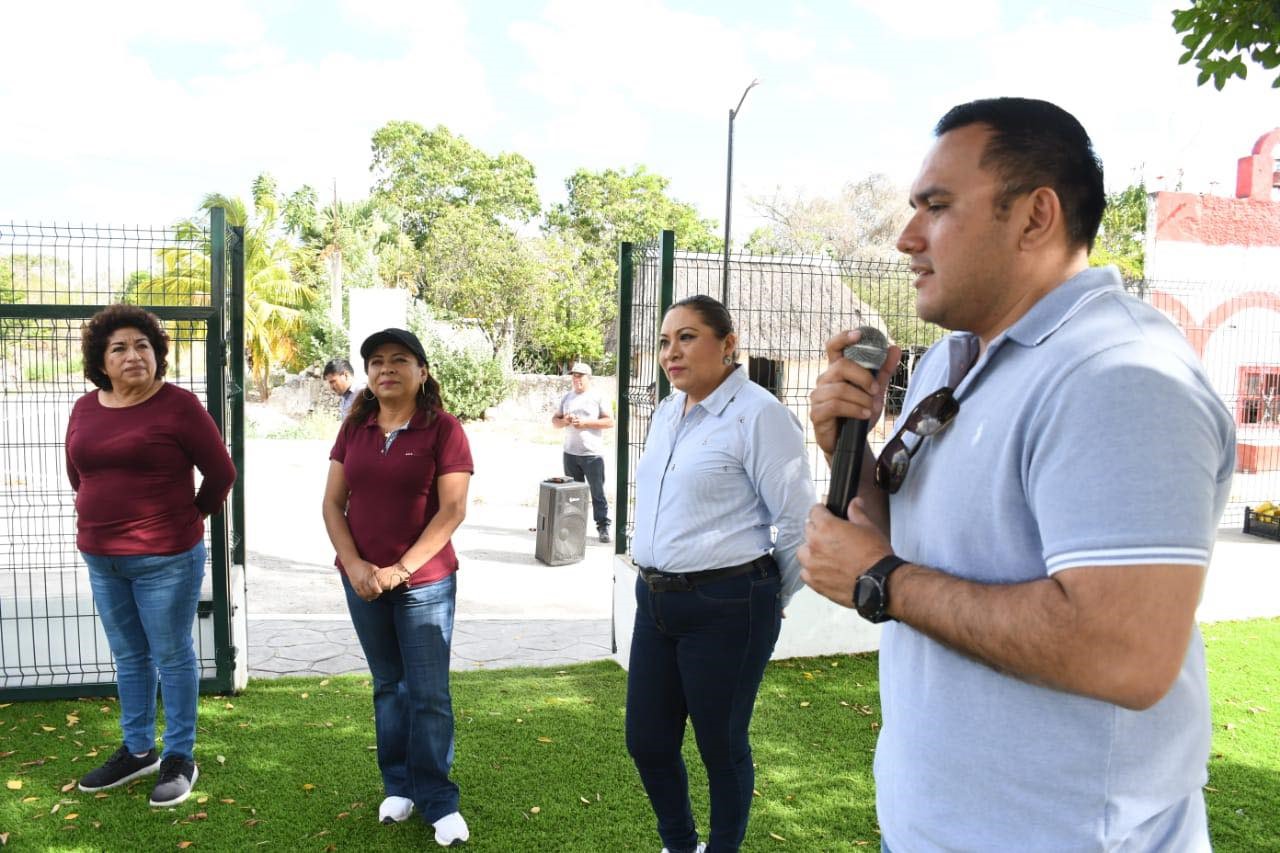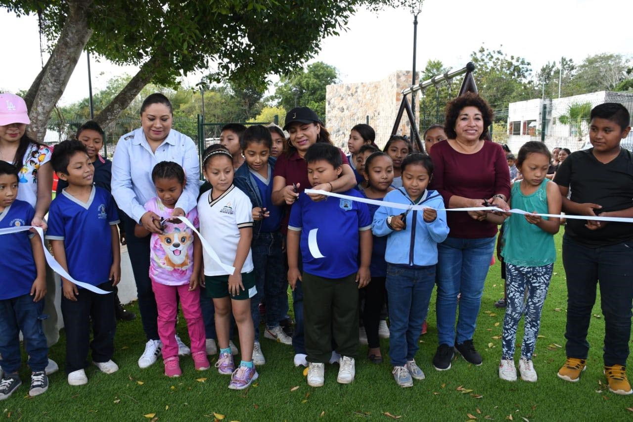 Acompañada por el director de Obras Públicas, Ricardo Maxín Soriano, así como de la síndica jurídica, Candelaria Huchín Xool, y la regidora Mayda Aracely Maas Tun, la edil calkiniense entregó al pueblo de San Nicolás esta obra que le viene a dar un rostro de modernidad, al convertirse en el primer parque público en el municipio con pasto sintético.