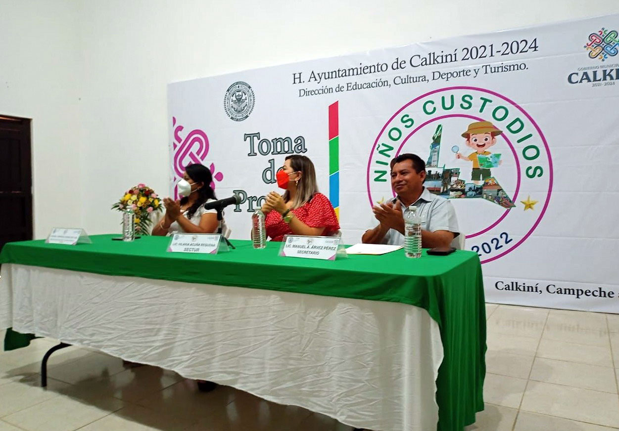 Autoridades municipales y estatales tomaron protesta a los niños custodios 2022 de Calkiní, quienes se encargarán de guiar y atender a los turistas locales, nacionales y extranjeros que arriben a este municipio durante los periodos vacacionales de verano y en el mes de diciembre. La toma de protesta estuvo a cargo de Hilaria Acuña Requena, representante del Secretario de Turismo, Mauricio Arceo. Nota completa